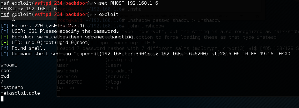 Como observamos solo necesita la IP y el puerto. El puerto viene preestablecido en el 21 y como el nuestro también está en ese puerto no lo tocamos. Tan solo especificamos la IP victima mediante set RHOST 192.168.1.6 (cada uno que ponga su ip, no seáis copy-paste) y ejecutamos exploit para correr el mismo